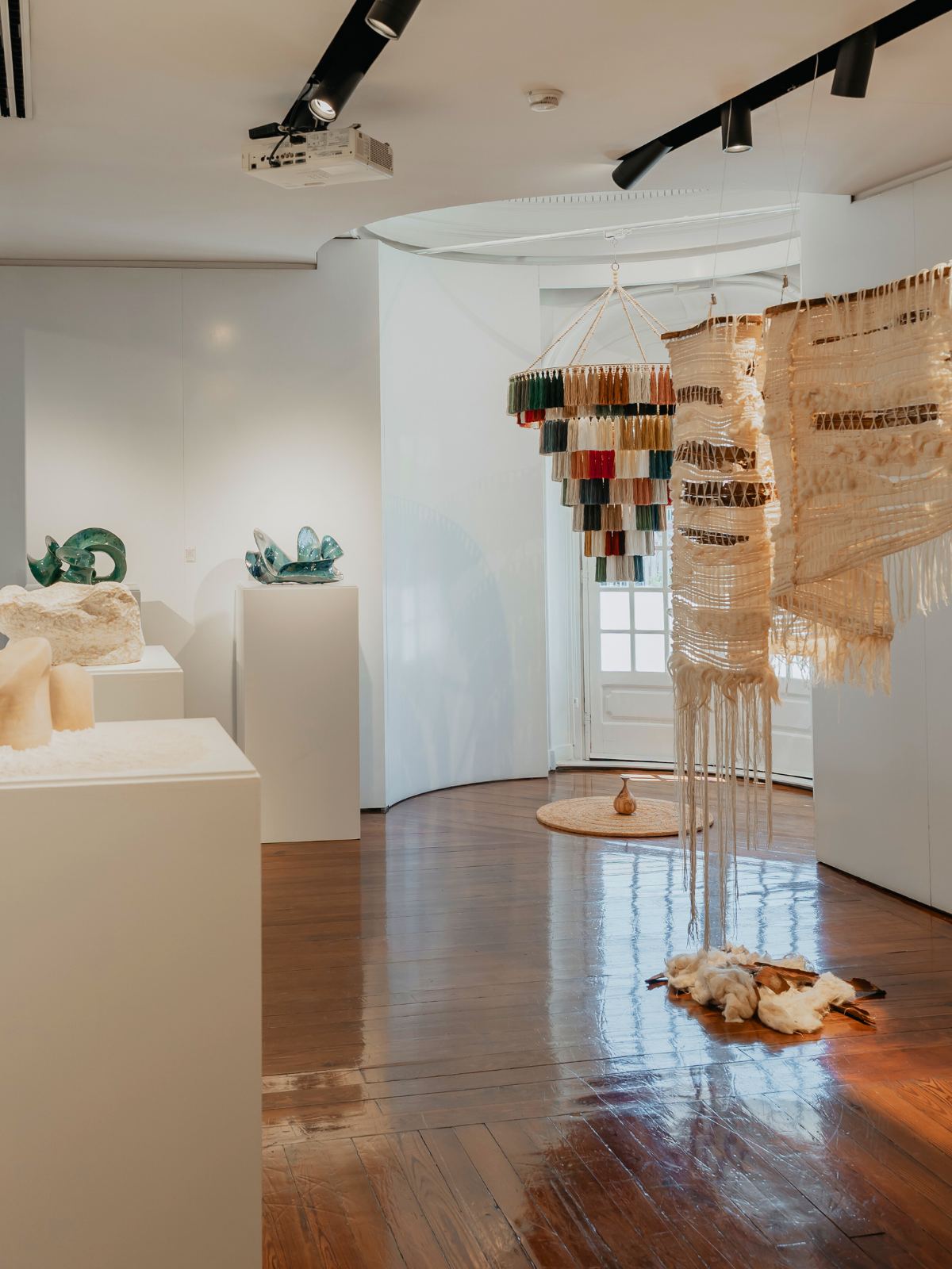 Distributed throughout the gallery, the collection guides visitors through an immersive and synaesthetic narrative. The suspended forms create a journey of perception: shifting perspectives, filtered light and subtle chromatic movement invite the body to slow down and inhabit the work.