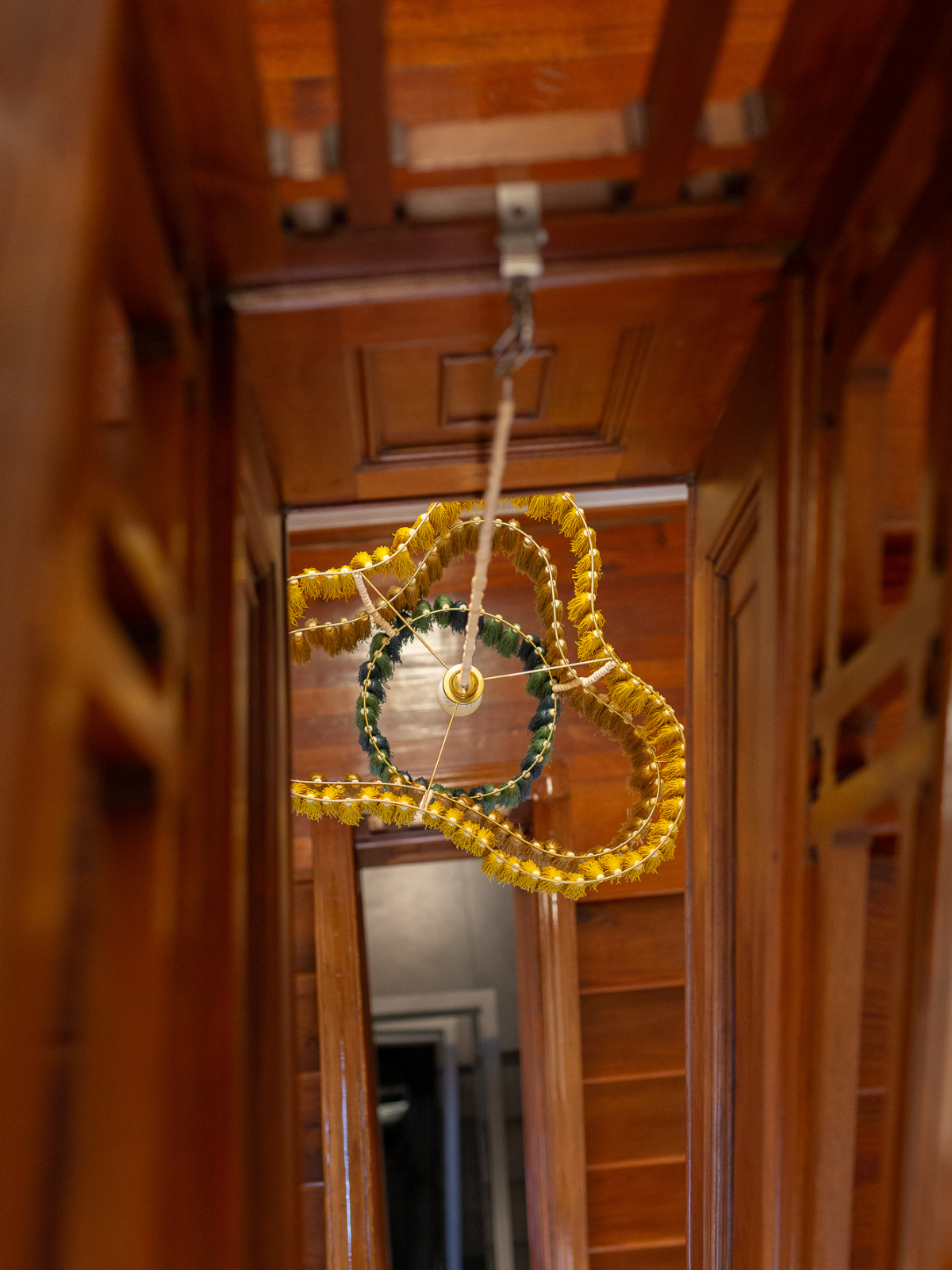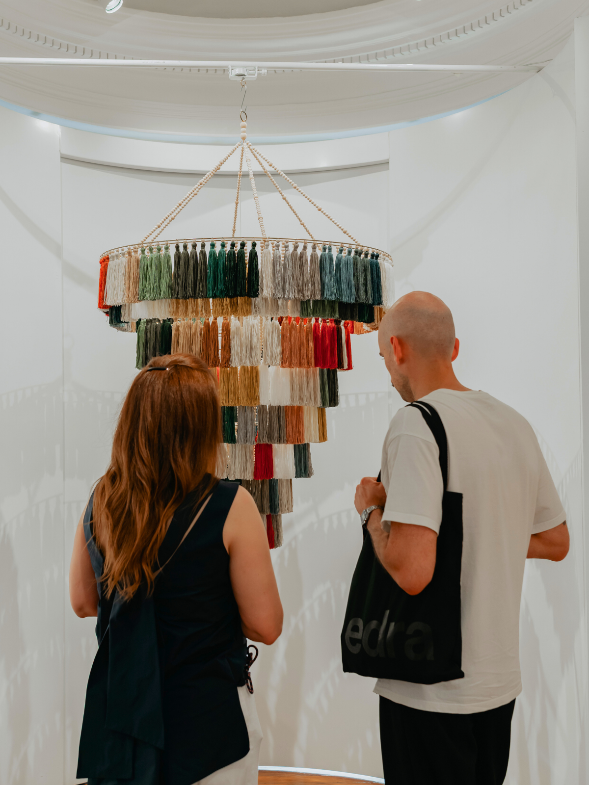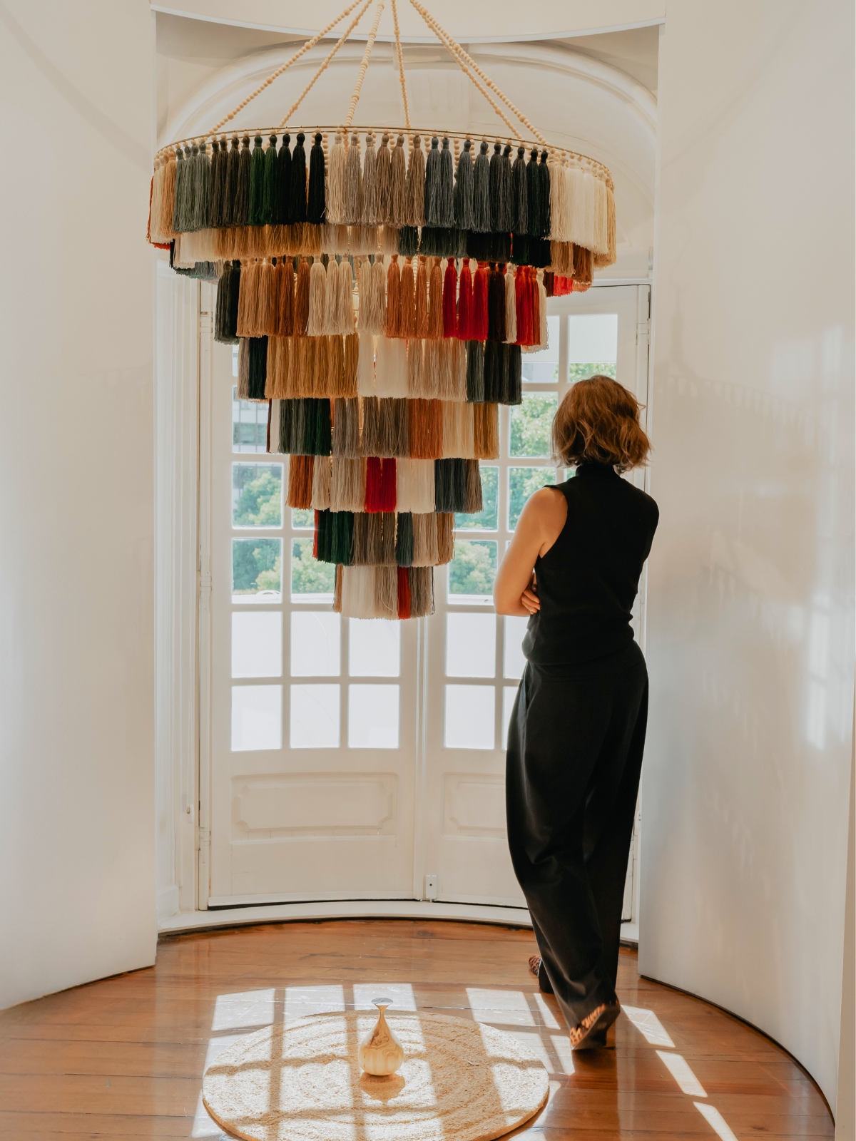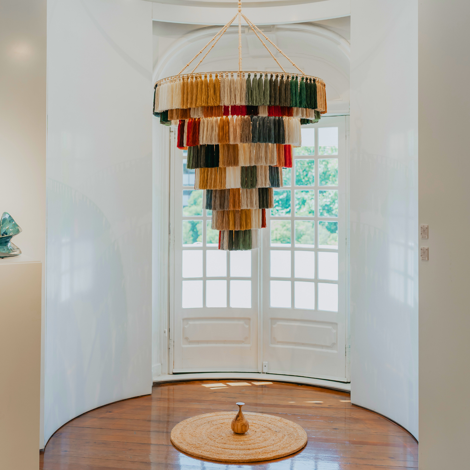 Floating in space, these luminous structures capture light and movement with delicacy and intention. Tassels become botanical elements. Fibre becomes atmosphere. Light becomes presence. What emerges is not decoration, but an experience — where material, space and perception converge.