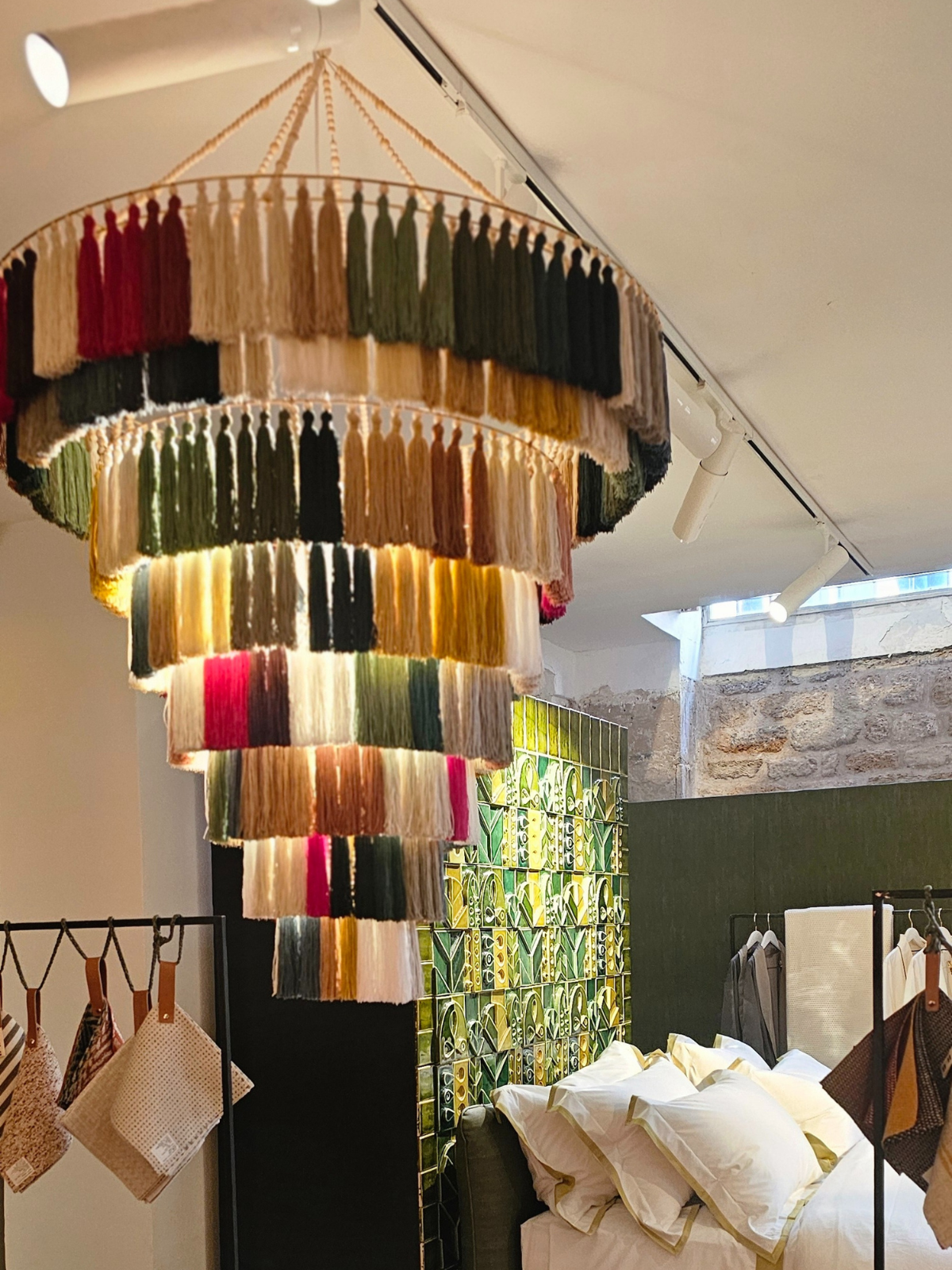Each tassel is carefully handcrafted from ECONYL® regenerated fibre, resulting in a work that unites artisanal precision, ecological consciousness and a contemplative aesthetic. Conceived as a luminous chandelier-sculpture, the piece celebrates renewal, abundance and transformation — an ode to spring and to the regenerative beauty of nature.